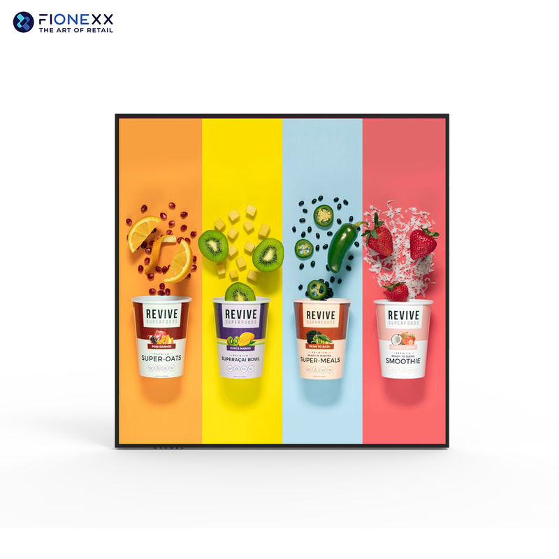 Con un perfil y bisel ultra delgados, la pantalla cuadrada es perfecta para una variedad de ubicaciones minoristas para adaptarse a construcciones a medida y diseños únicos.